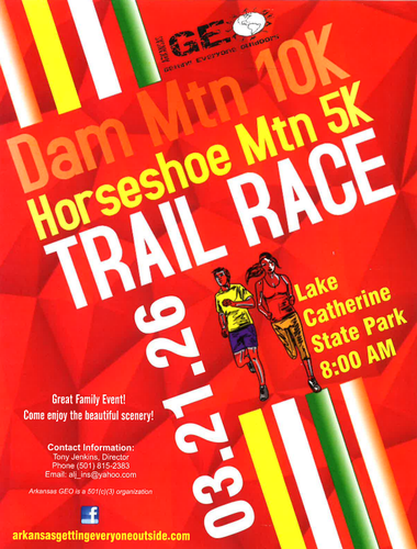Name: Dam Mountain Trail 10K and Horseshoe Mountain Trail 5KDate: March 21, 2026Time: 8:00 AM - 12:00 PM CDT