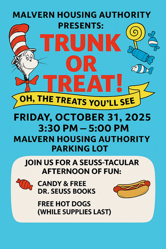 Name: Trunk or Treat - presented by Malvern Housing AuthorityDate: October 31, 2025Time: 3:30 PM - 5:00 PM CDTEvent Description:Trunk or Treat